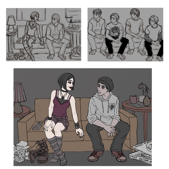 I will send you a rough sketch of the character(s), pose, general composition, and outline of all elements for your approval. You can change as much as you'd like during this step.